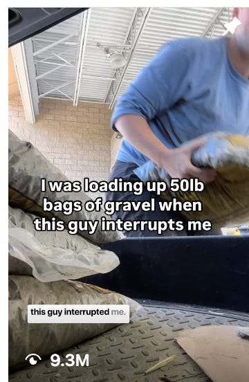 I went viral for a reel in September 2024 that got me 9.3 million views, 15,000 followers, an NPR feature on All Things Considered, and the lesson learned that people can be really mean online, even about the most innocent story of a stranger helping me unload gravel and how it reminded me of my dead dad. Sheesh people.